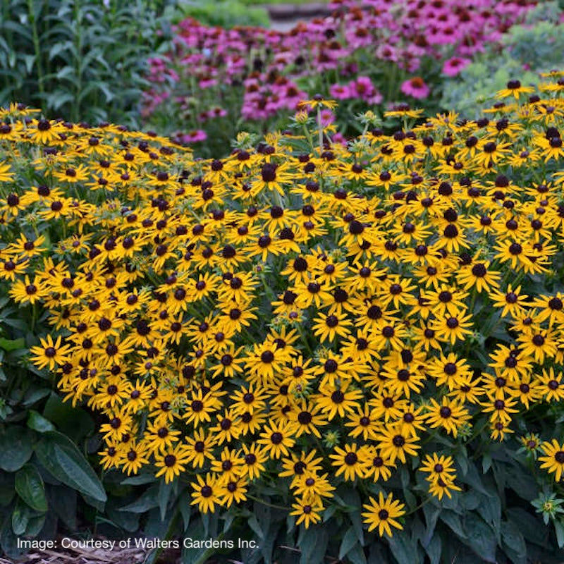 Native to North America. This Rudbeckia is distinctively different to Rudbeckia 'Goldsturm' and deamii as it flowers six weeks later than both of the above. A true Autumn flowering Black-Eyed Susan! …. And it can flower for up to ten weeks. The foliage is shiny and deep green and finer in form than any other Rudbeckia. A welcome addition to the Rudbeckia group. Planted en masse in American public gardens, used in the 'new perennial movement', prairie gardens or just to brighten up the garden. Herbaceous. Height in flower 60cm. Perfect with Asters, Sedums and Ornamental Grasses.