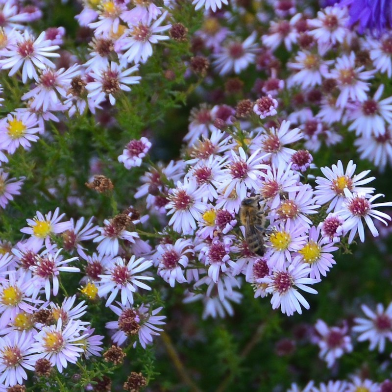 A tall Aster to 1.3m with almost fluorescent violet blue flowers in array around a yellow to gold centre. Tough and hardy to severe frost. Eye catching! Compliments ornamental grasses, Eupatoriums, Persicaria, Sanguisorba and Rudbeckia.