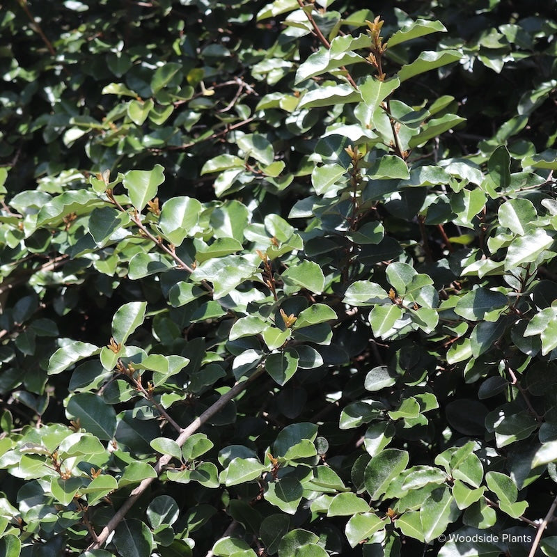 Often referred to as Silverberry. We have found that in our searing heat during Summer (45℃ +) many plants struggle. Elaeagnus pungens is not one of them. We have pruned our plants into 1m x 1m spheres and in another area as a 1m x 0.5m hedge. The golden bronze new growth has a stunning effect, particularly when plants have been shaped. Very tough and hardy (-5℃ to 45℃) with no supplementary watering. Produces edible berries in Autumn and Winter which contain Omega 3 and Lycopene (reputedly a cancer fighting agent). Elaeagnus harbours nitrogen fixing organisms so is able to grow in poor soils.