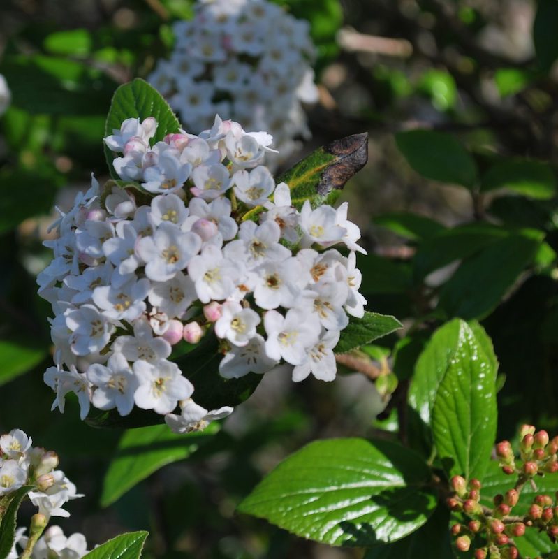 This Viburnum cultivar provides year round interest in any garden. Deciduous in Winter, the bare stems and branches provide a wonderful silhouette. In Spring, beautiful lobed leaves emerge in a bronzy green colour which leads to lace-cap flowers similar to Hydrangea. Creamy white bracts surround red bronze flowers in a beautiful yet unusual array in Autumn. Stunning orange red hues dominate as the shrub heads back into Winter. The species, Viburnum sargentii is an Asian native but this cultivar is named for the Onondaga people whose traditional homeland is Onondaga County, New York. 'Onondaga' benefits from well composted soils with ample moisture. 2.5m x 1.5m. Cold tolerant to -20ºC. A recipient of the RHS Award of Garden Merit.